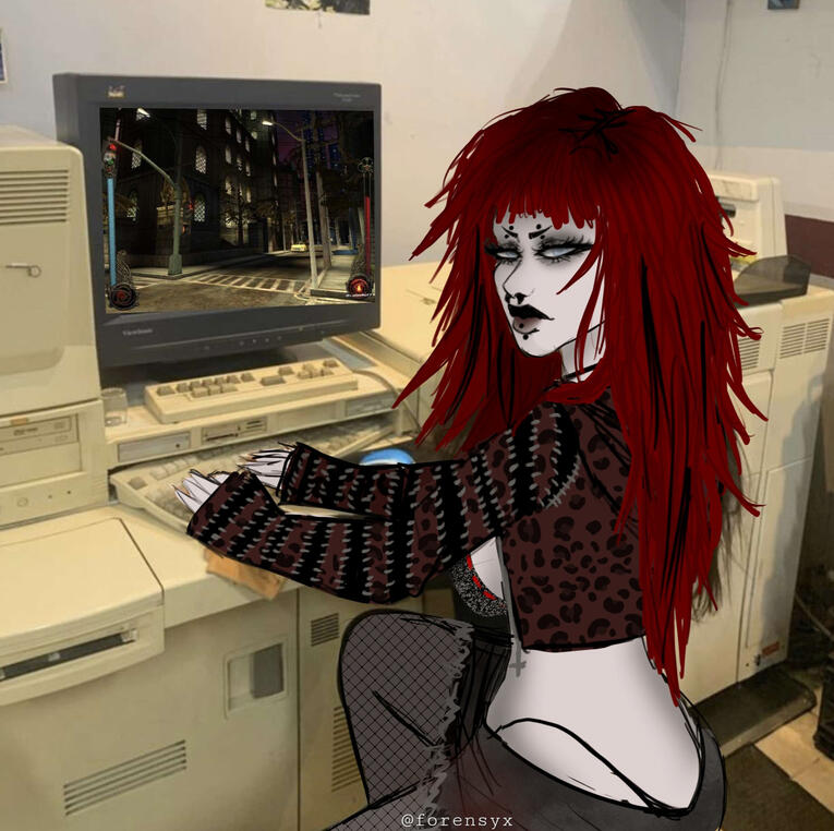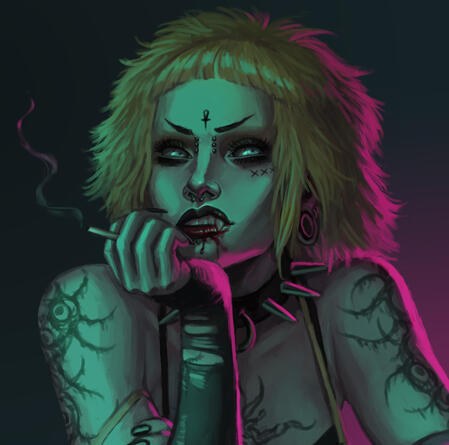 OCs, VTM, video games, ttrpgs, forensic science, body horror, alternative fashion, body modification, post-apocalypse, sci-fi, cyberpunk