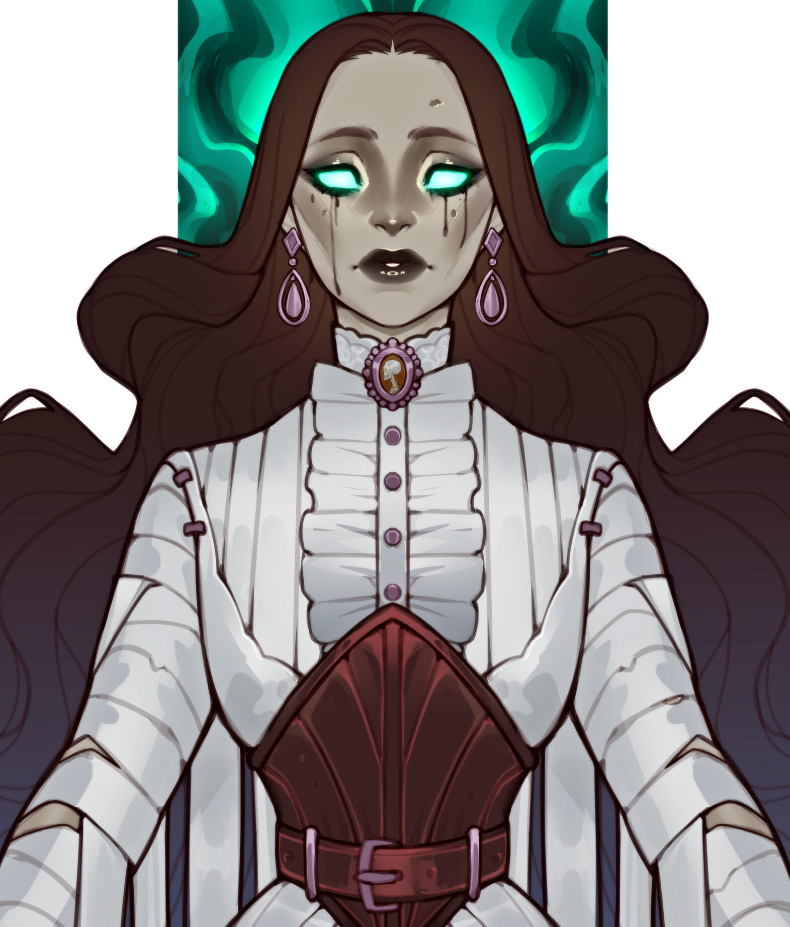 IN LIFE, GWEN'S PARENTS HAD HER SHIPPED TO AN ASYLUM TO TRY TO "CURE" HER UNUSUAL INTERESTS. SHE WAS ABUSED LIKE MOST ASYLUM PATIENTS, AND FEARS MENTAL HEALTH INSTITUTIONS DEEPLY.