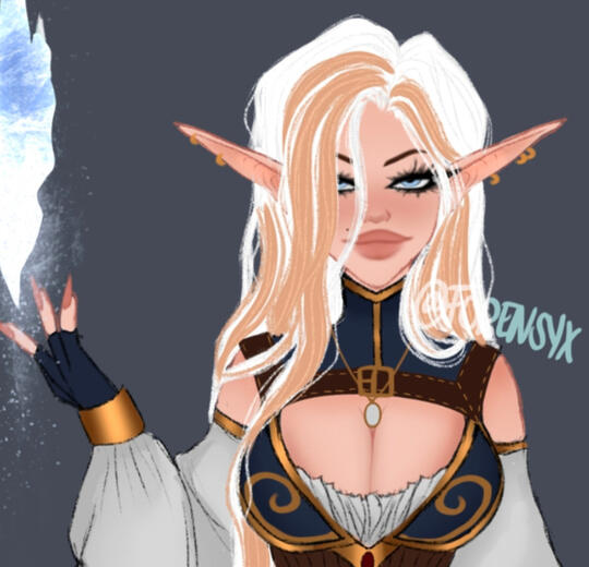 name : yvaine stormblooduniverse : world of warcraftdescriptors : kul tiran half-elf ; cryomancer ; trouble magnet ; wannabe pirateart by : forensyx (me)