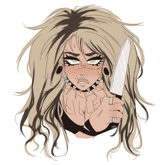 name : roxxi shawuniverse : original settingdescriptors : final girl x slasher ; 80's rockstar's gf but with even worse taste in menart by : gutmouth